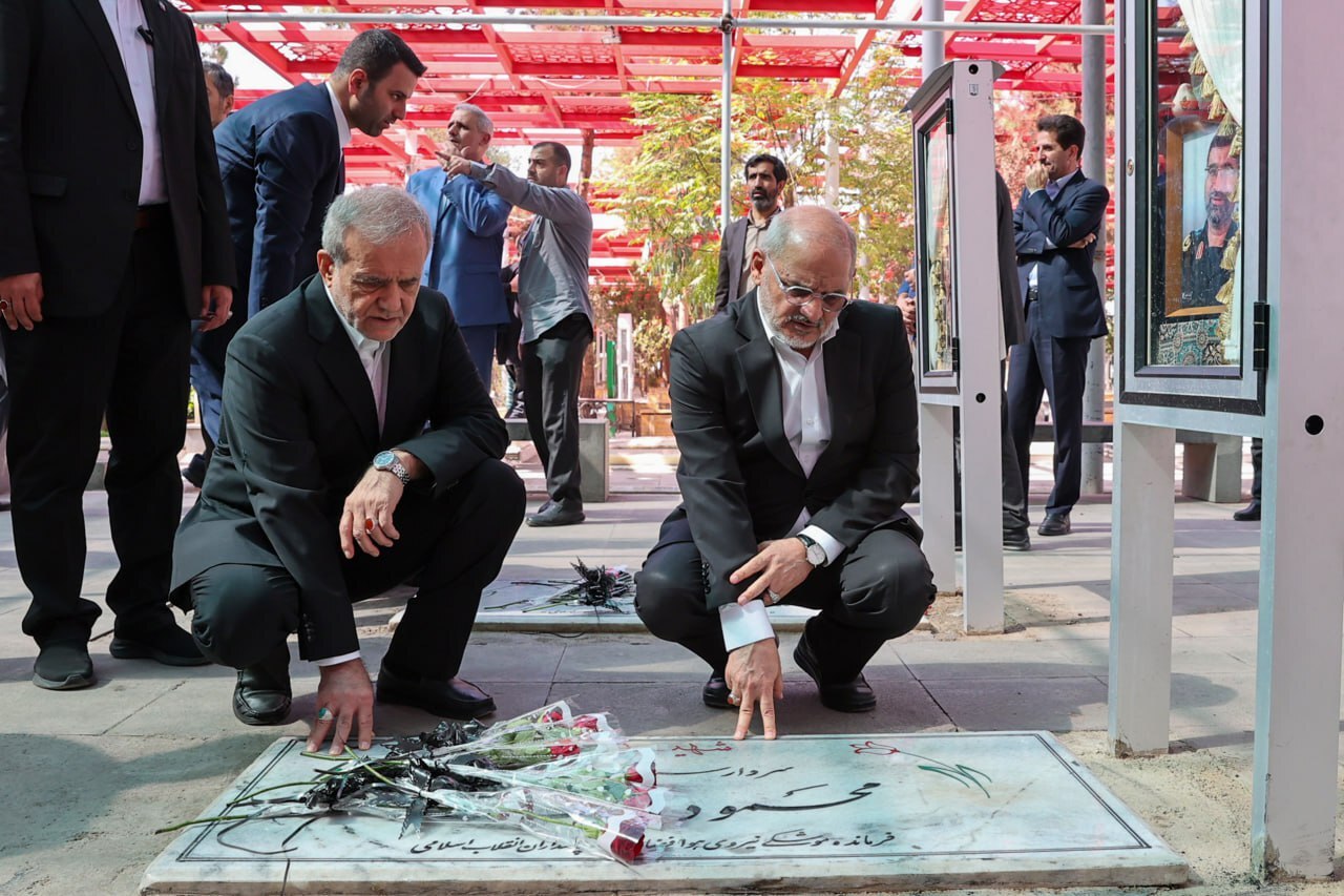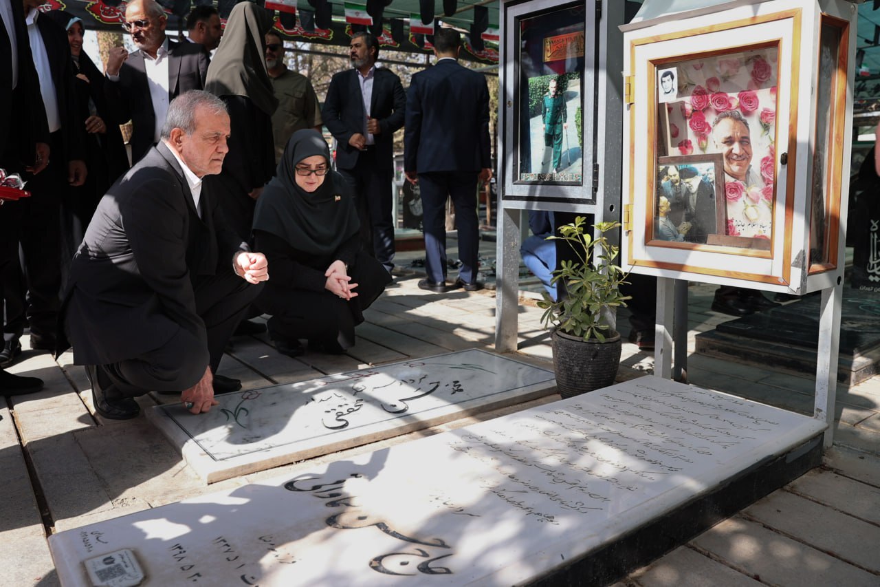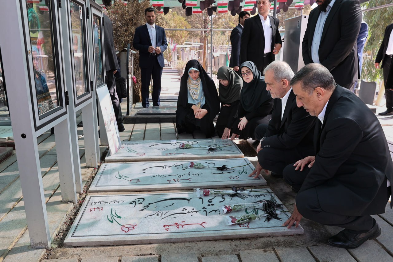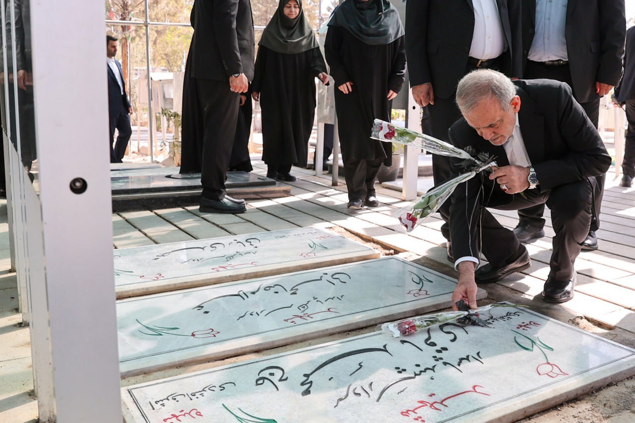 حضور پزشکیان بر مزار شهدای حمله اسرائیل به ایران