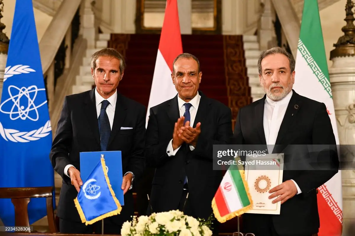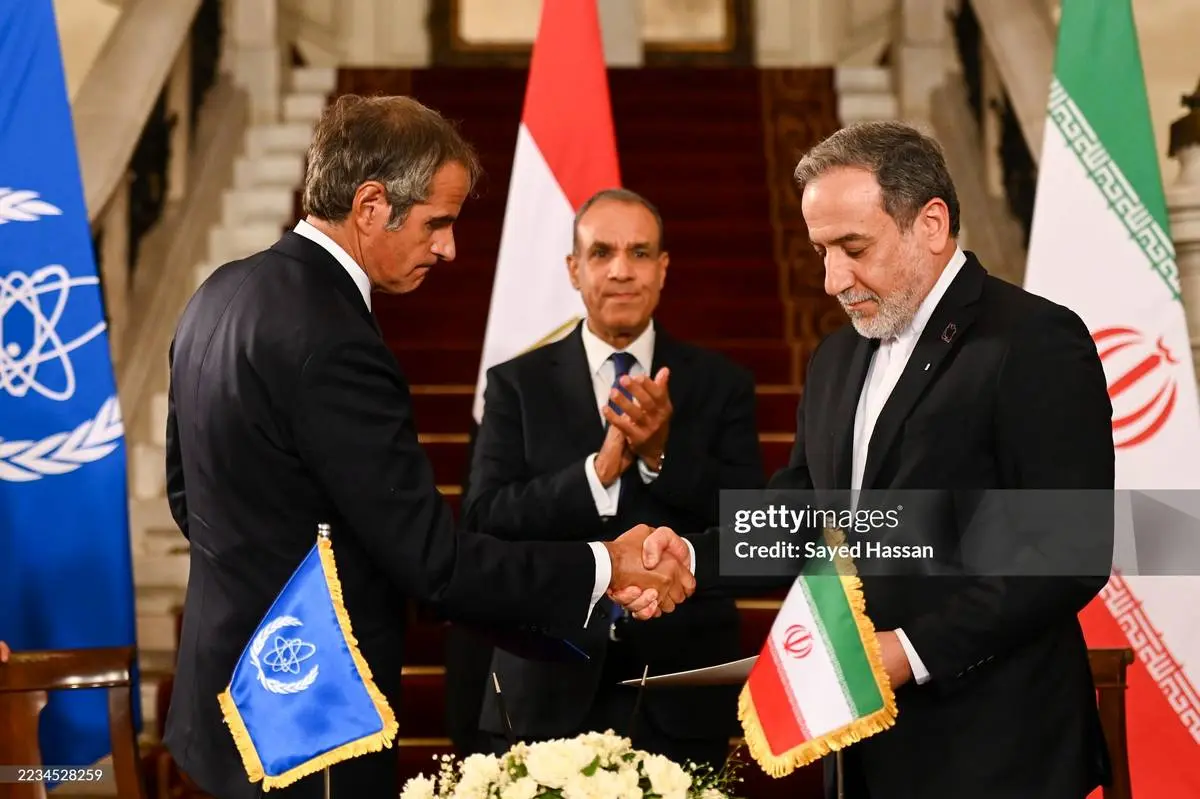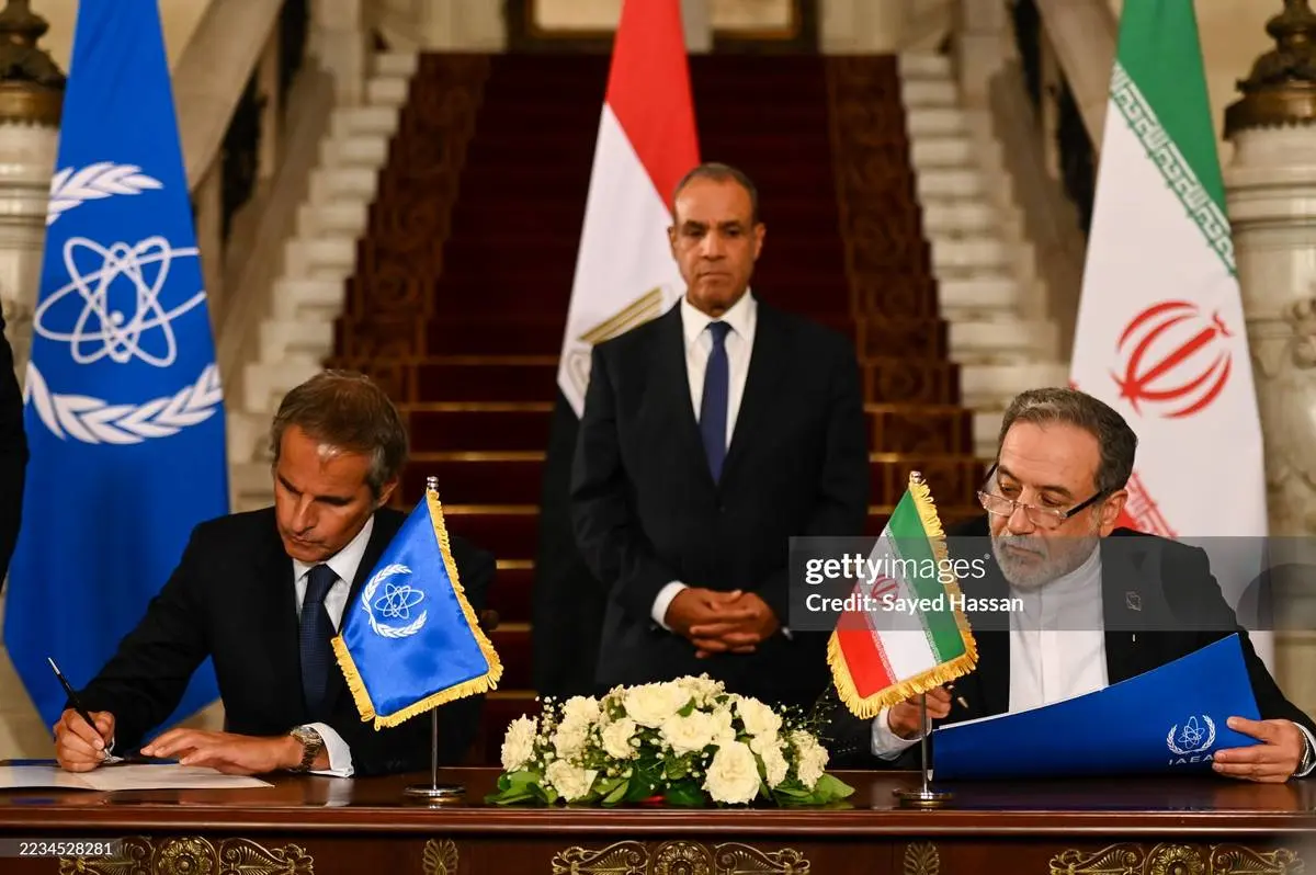 جمهوری اسلامی ایران و آژانس بین‌المللی انرژی اتمی روز سه‌شنبه ۱۸ شهریور در قاهره، پایتخت مصر توافق‌نامه‌ای امضا کردند که زمینه را برای ازسرگیری همکاری‌ها، از جمله در زمینه راه‌های از سرگیری بازرسی‌ها از تأسیسات هسته‌ای ایران، فراهم می‌کند. اعلامیه این توافق پس از دیدار میان «بدر عبدالعاطی» وزیر امور خارجه مصر و «سید عباس عراقچی» وزیر خارجه ایران و «رافائل گروسی» مدیر کل آژانس بین‌المللی انرژی اتمی، منتشر شد. جدیت عراقچی در عکس‌های این دیدار جلب توجه کرده است.