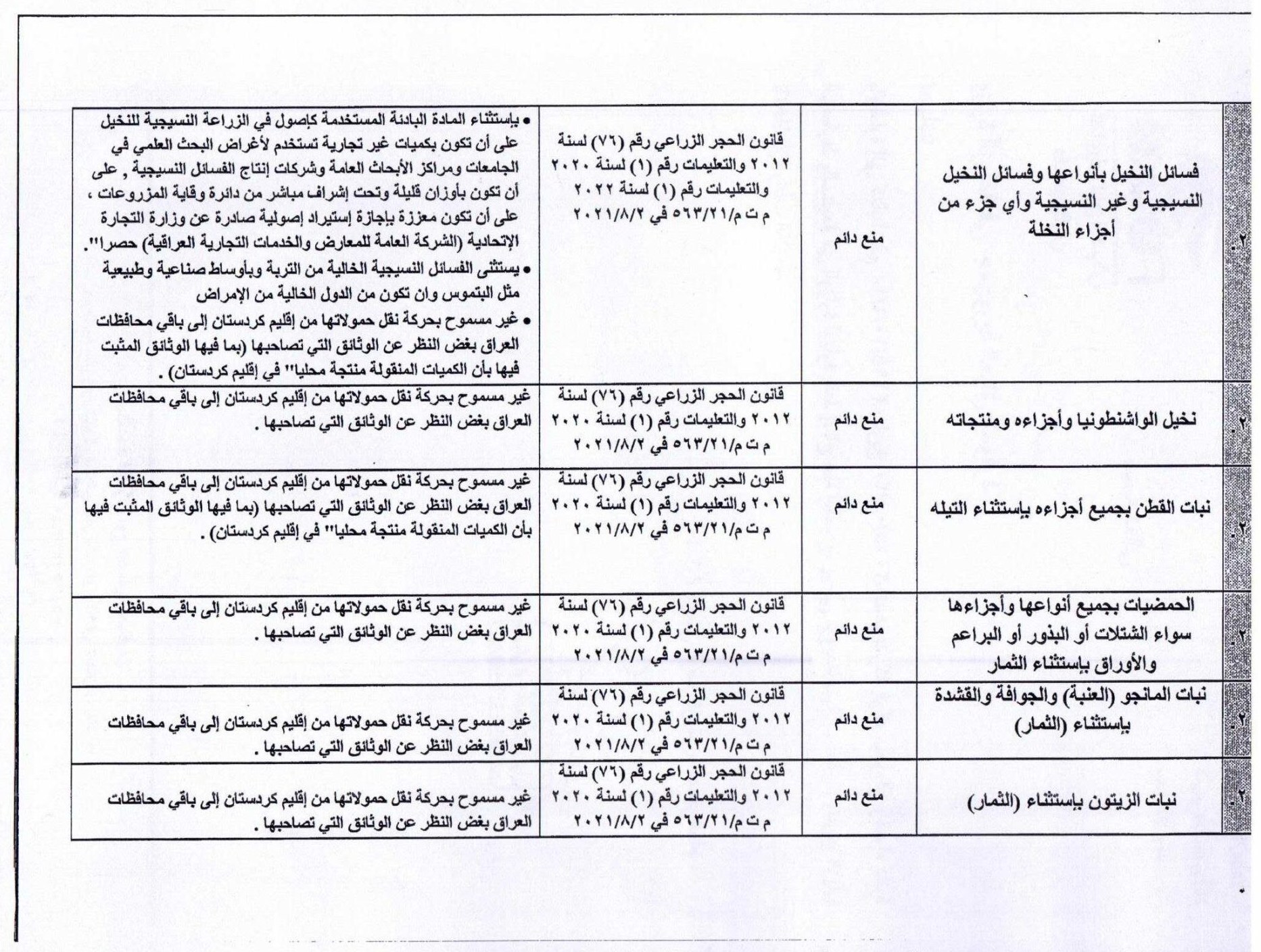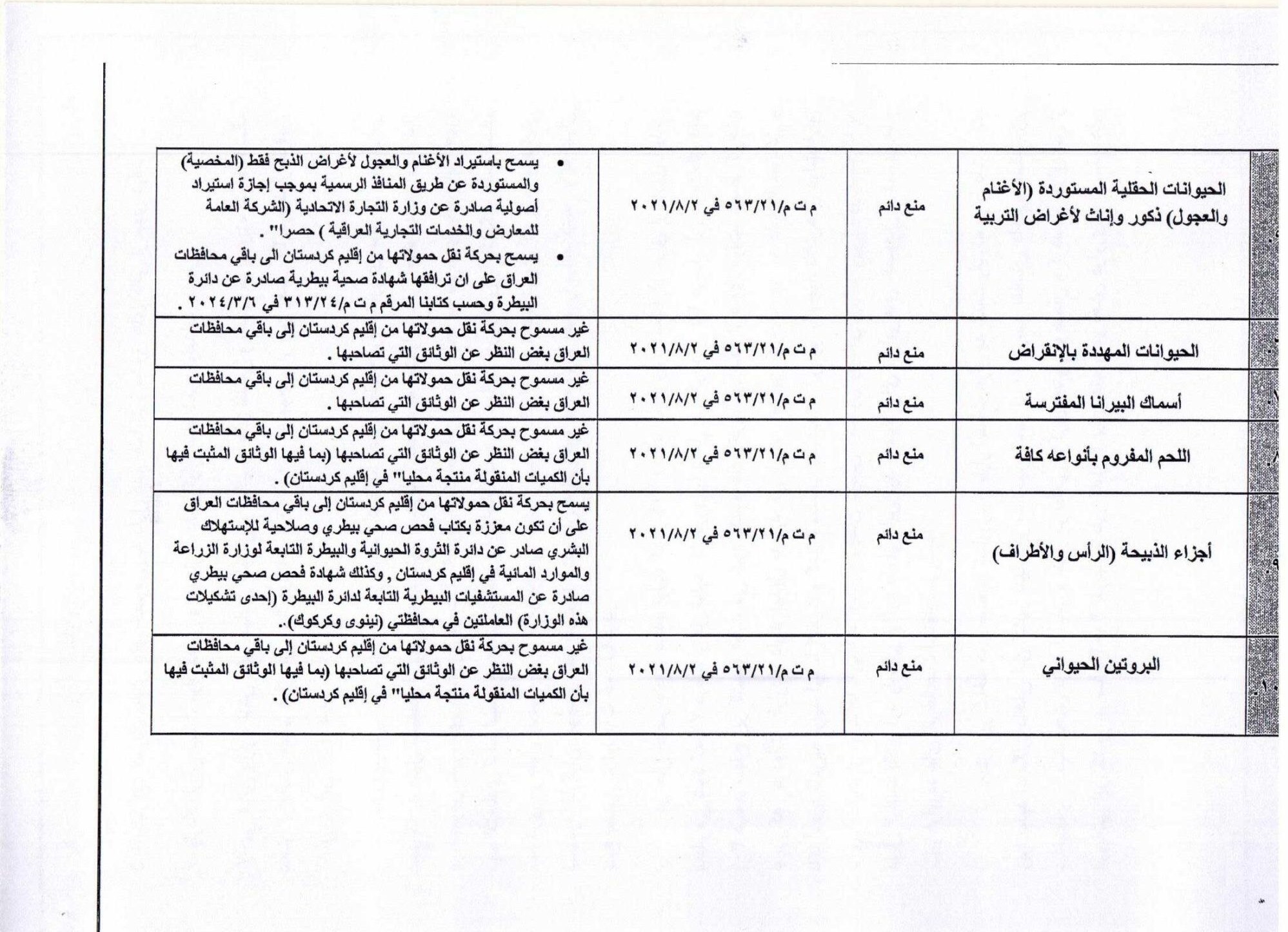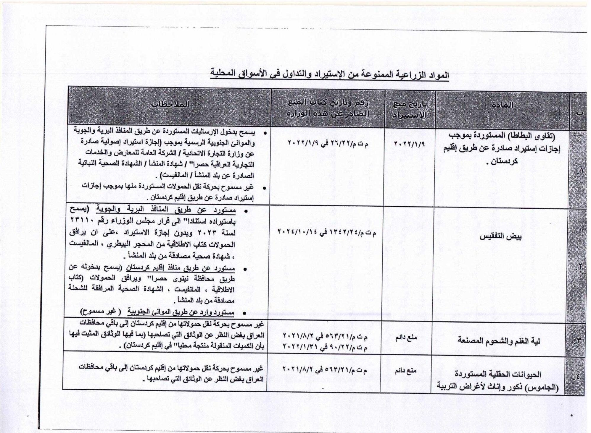 دلیل این ممنوعیت در چارچوب استراتژی وزارت کشاورزی عراق و بر اساس تقویم کشاورزی و به دلیل فراوانی تولید داخلی آنها و ثبات قیمتها در بازارهای داخلی آن کشور اعلام شده است.
