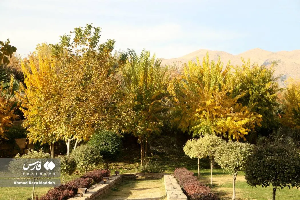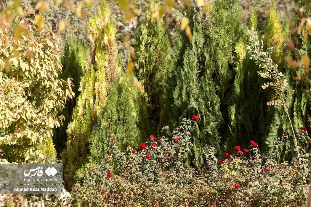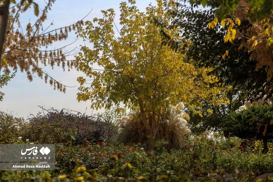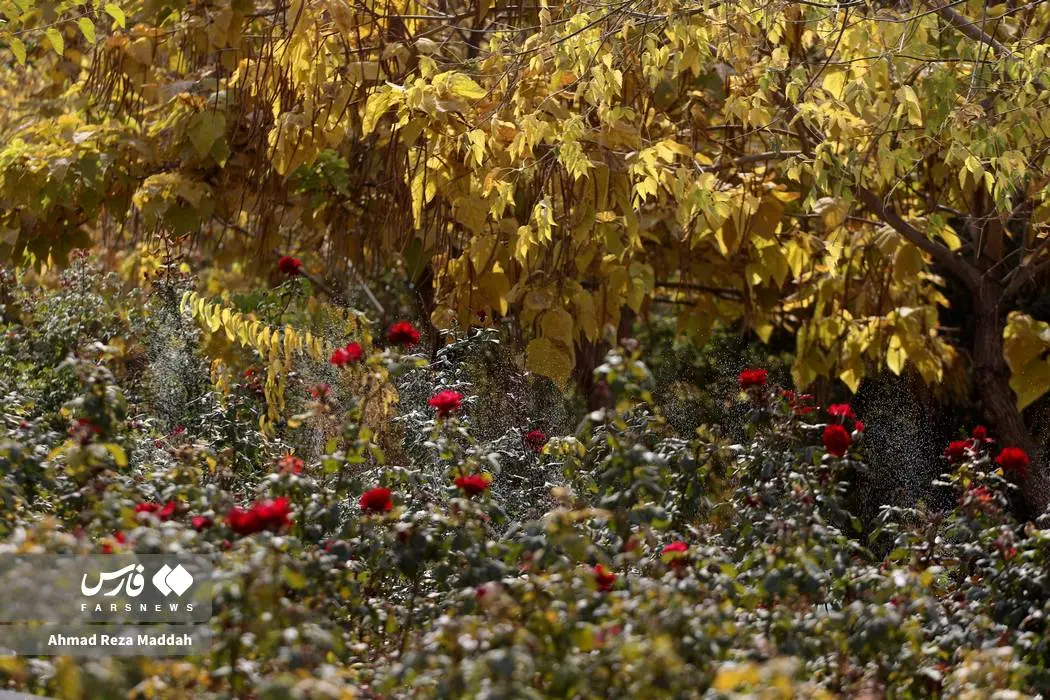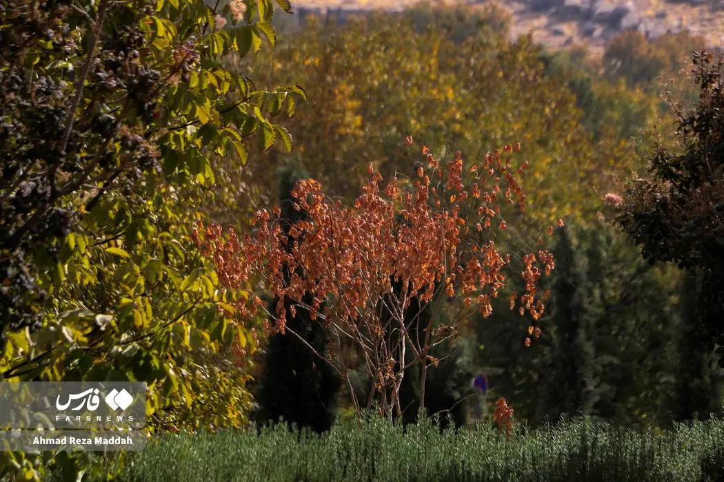 رقص برگهای پاییزی در باغ گلهای شیراز