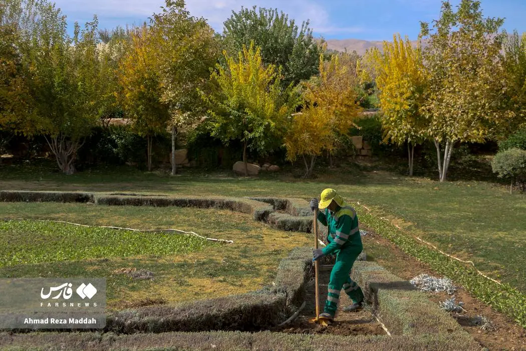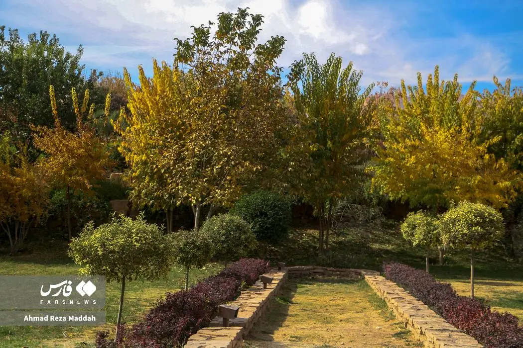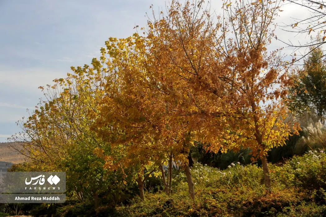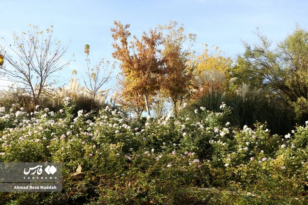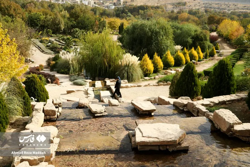 رقص برگهای پاییزی در باغ گلهای شیراز