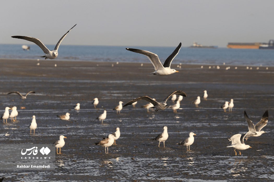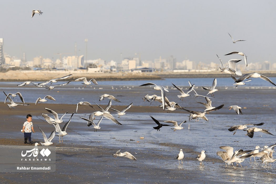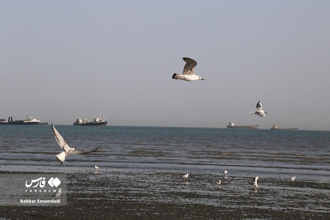 در ساحل نیلگون خلیج فارس، مرغان دریایی با پروازهای آرام و بیپایان خود تصویری شاعرانه از همزیستی طبیعت و دریا میآفرینند؛ جایی که نغمهی نسیم و صدای این پرندگان درهم میآمیزد و آرامشی جاودانه در دل رهگذران مینشاند.