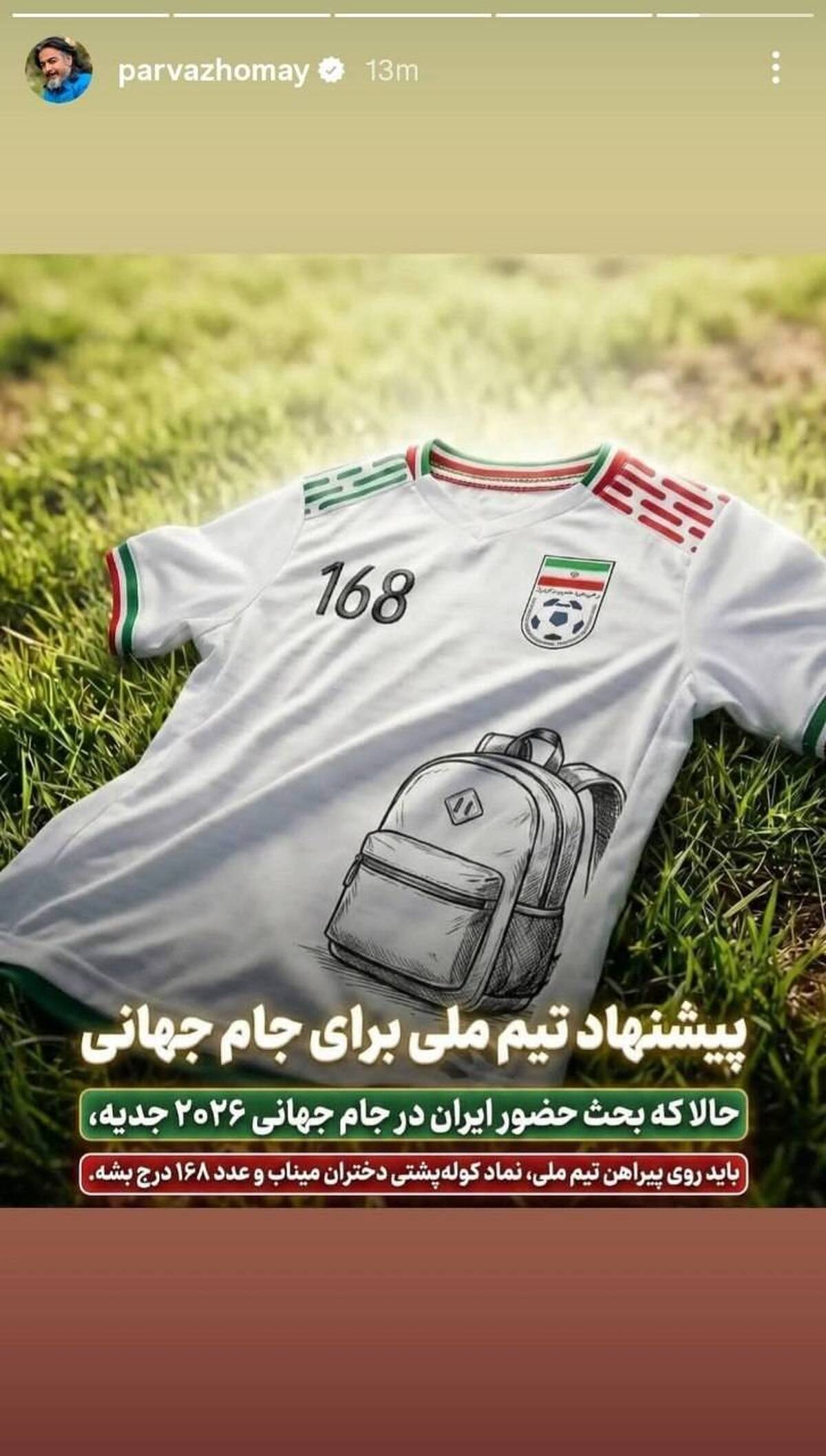 پرواز همای خواننده ایرانی با انتشار یک تصویر پیشنهاد خود را برای پیراهن تیم ملی در بازی‌های جام جهانی مطرح کرد.