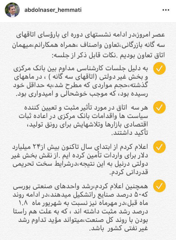 رئیسکل بانک مرکزی نوشت از ابتدای سال بیش از ۲۴ میلیارد دلار برای واردات تامین کردیم.
