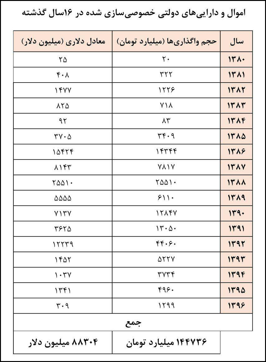 جدول زیر میزان واگذاریها به روایت سازمان خصوصیسازی را نشان میدهد: