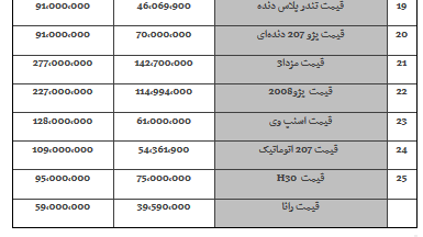 قیمت خودرو امروز ۱۳۹۷/۱۰/۱۵