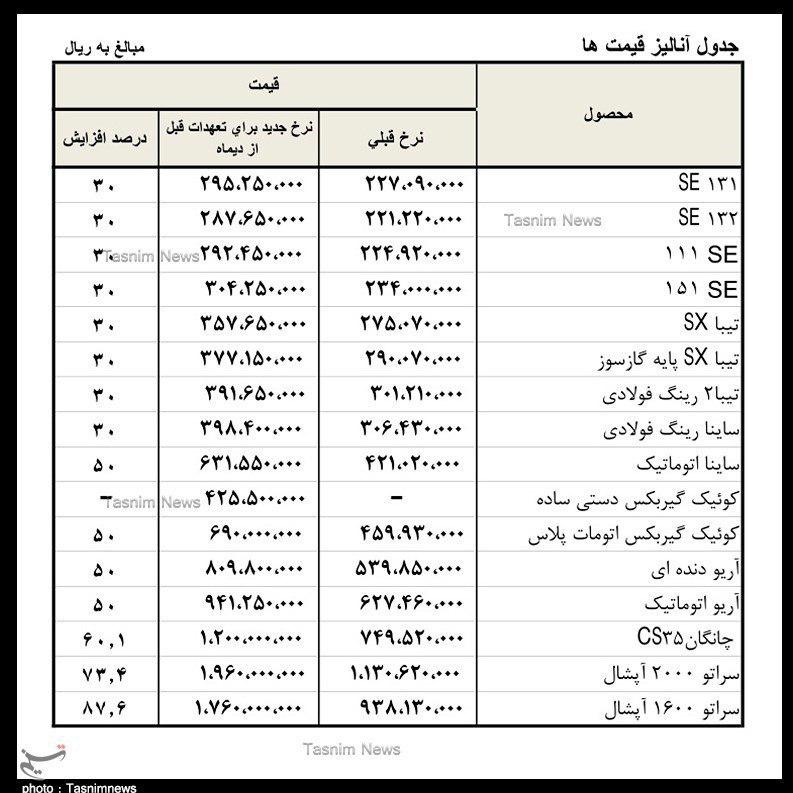 اعلام قیمت جدید انواع محصولات سایپا +جدول